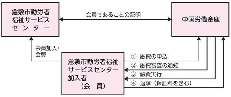 - 倉敷市勤労者福祉サービスセンターの会員は,直接中国労働金庫に融資の申込を行います。